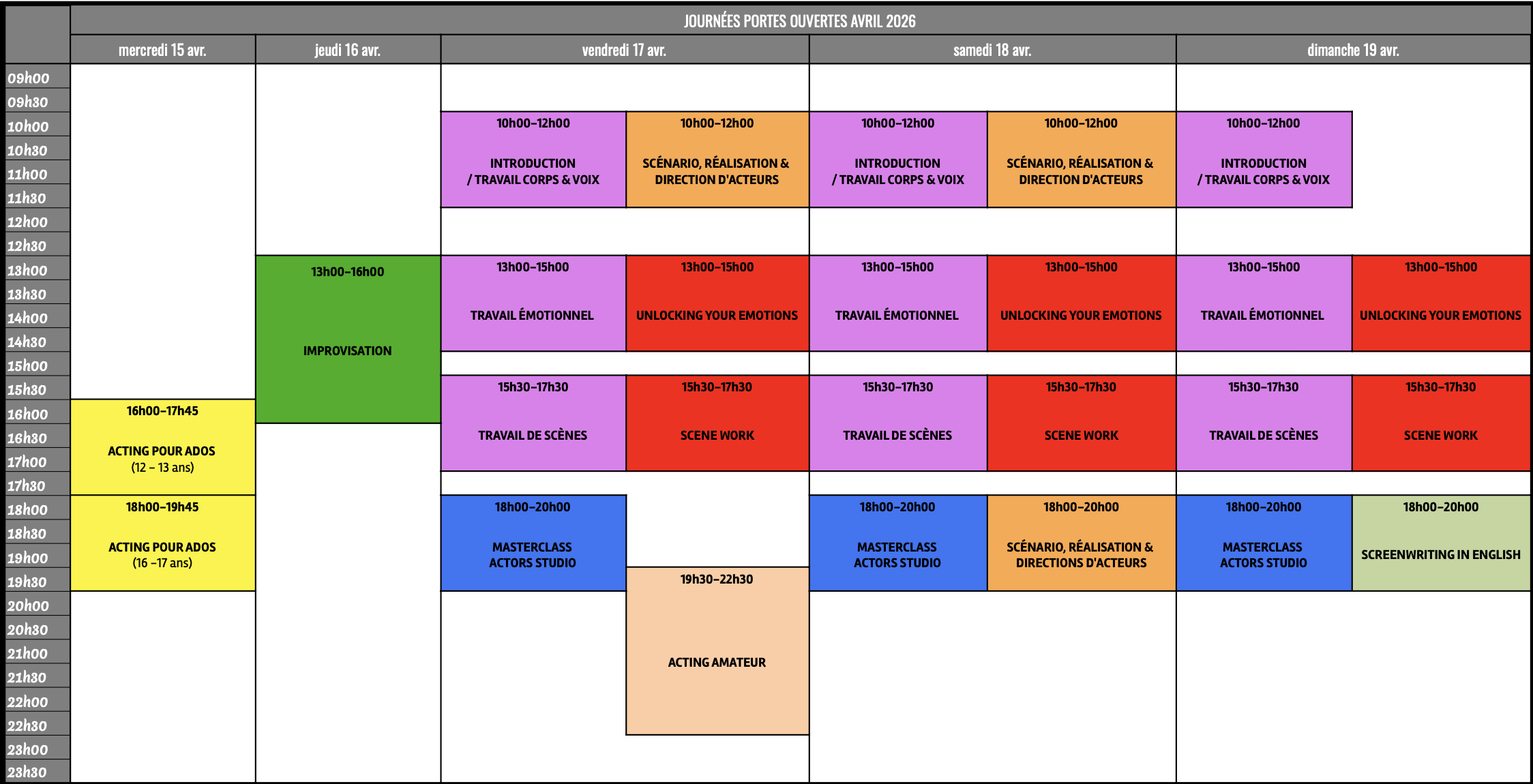 Si vous n’êtes pas disponible aux dates et ateliers ci-dessous, n’hésitez pas à nous contacter au +33607414125.